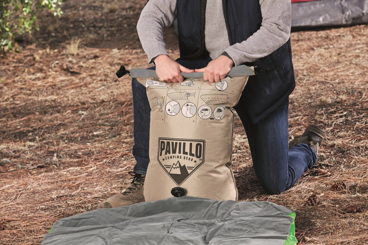 Met het Roll & Relax luchtbed wordt een speciale 3-in-1 opbergtas bijgeleverd. Je kunt de tas ten eerste gebruiken als opberg- of reistas wanneer je on the go bent. Daarnaast kun je hem ook opblazen met lucht en als kussen gebruiken wanneer je gaat slapen of gewoon even uit wil rusten. Tot slot dient te opbergtas van het Bestway luchtbed ook als pomp. Door de zak met lucht te vullen en hem vervolgens aan te sluiten op het ventiel van het opblaasmatras laat je hem gemakkelijk vol lopen met lucht. Dankzij deze unieke AirCinch techniek heb je slechts 50 seconden en 6 hand compressies nodig om het luchtbed volledig op te blazen. Zo hoef je geen zware pomp meer mee te sleuren wanneer je gaat kamperen.