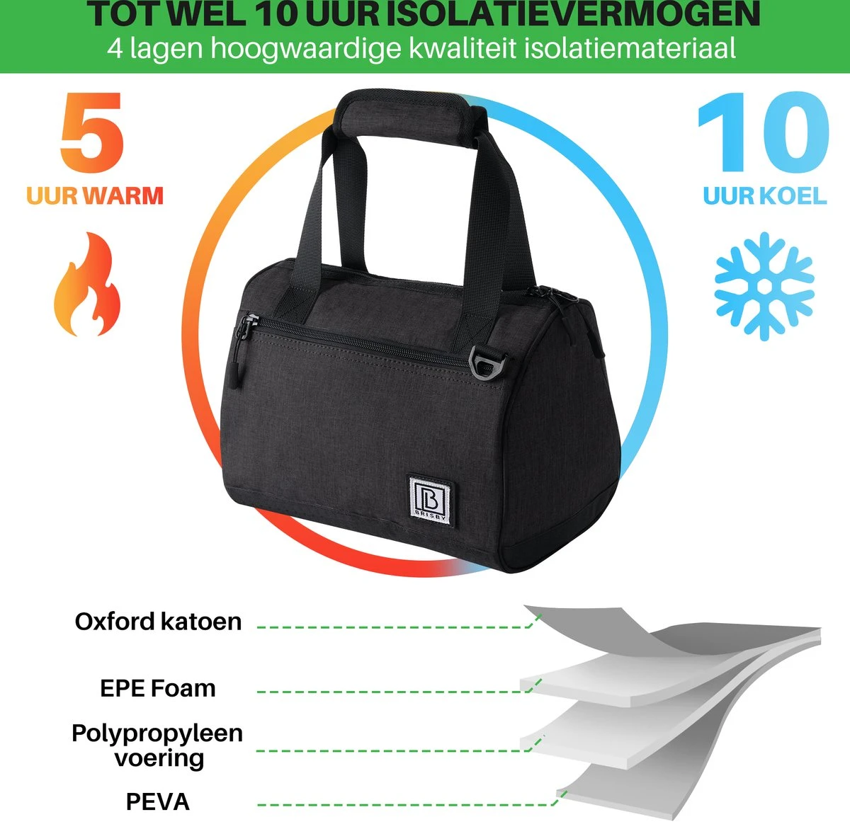 Brisby 4 Laags Geïsoleerde Koeltas – Lunchtas 10 Liter – Zwart
