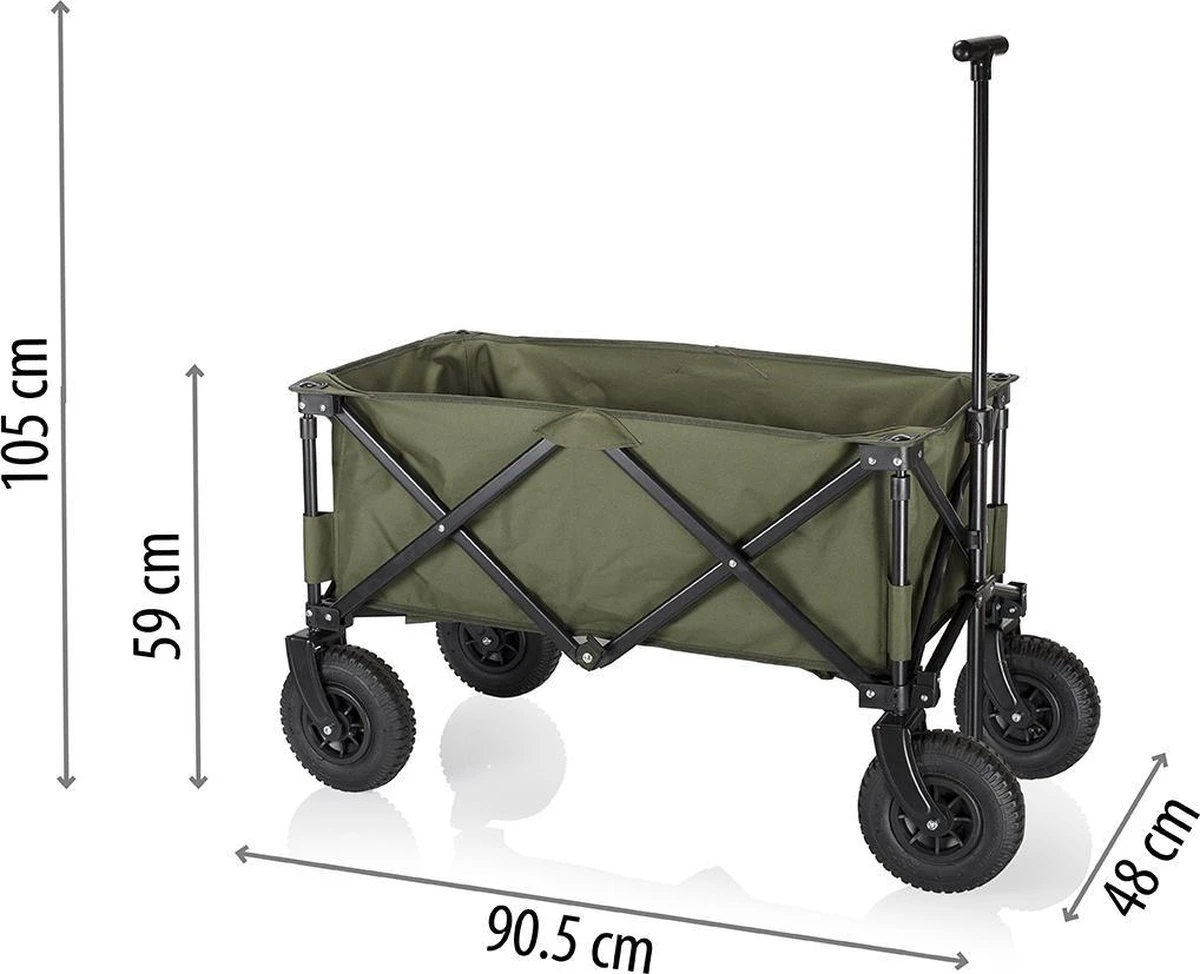 De Campart opvouwbare bolderwagen is ideaal voor thuis en op vakantie. Met zijn stevige wielen en draagvermogen tot 70 kilo kan je er al je spullen in kwijt voor een dagje strand of je zware boodschappen. De bolderkar is eenvoudig met één hand in- en uit te vouwen en wordt geleverd inclusief draagtas.