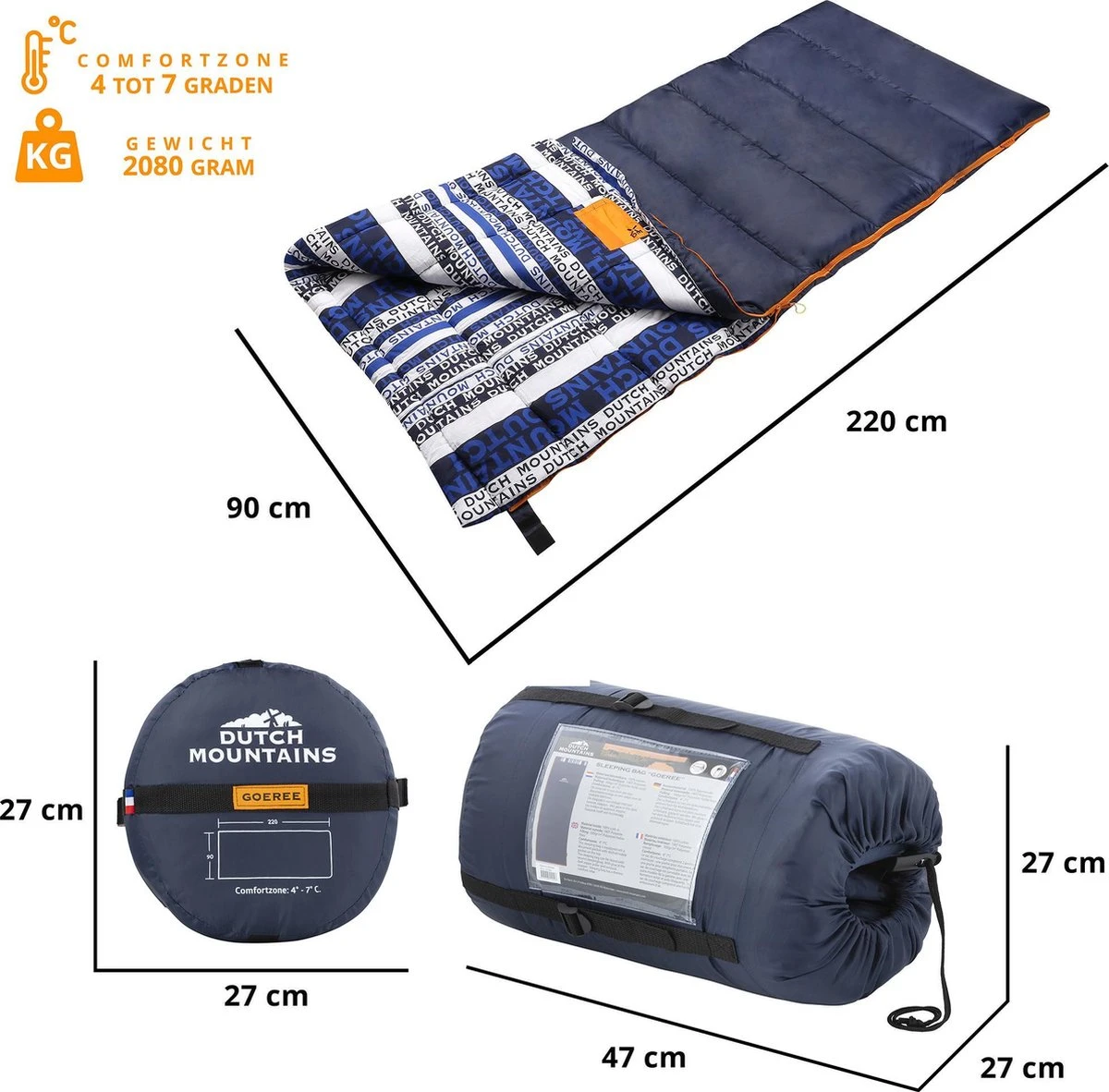 Dutch Mountains Slaapzak Goeree XL – Extra Groot 220x90cm – Katoenen Binnenkant – Aanritsbaar – Tochtstrip En Compressiehoes