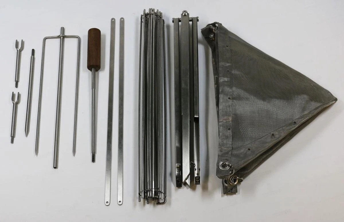 Door zijn lichtgewicht en draagbaarheid is deze vuurkorf met grill en spit ook ideaal om mee te nemen bij het kamperen. Het doel van de vuurkorf is niet alleen om een gezellige sfeer te creëren, maar ook om hem te gebruiken als kookvuur. Daarvoor hebben we een aantal kookaccessoires gemaakt die heel gemakkelijk te gebruiken zijn in combinatie met de opvouwbare vuurkorf.