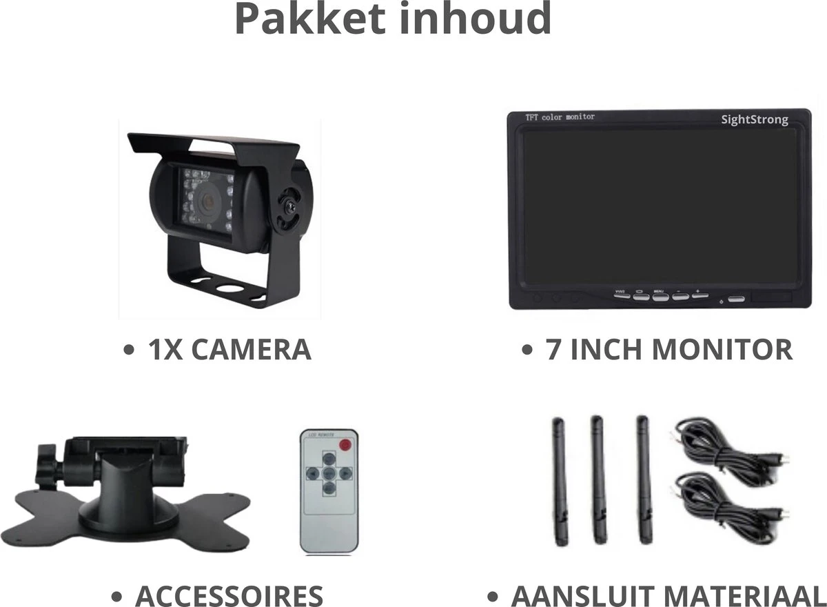 SightStrong Draadloze Achteruitrijcamera – 7” Scherm – Nachtzicht 18LED 15m